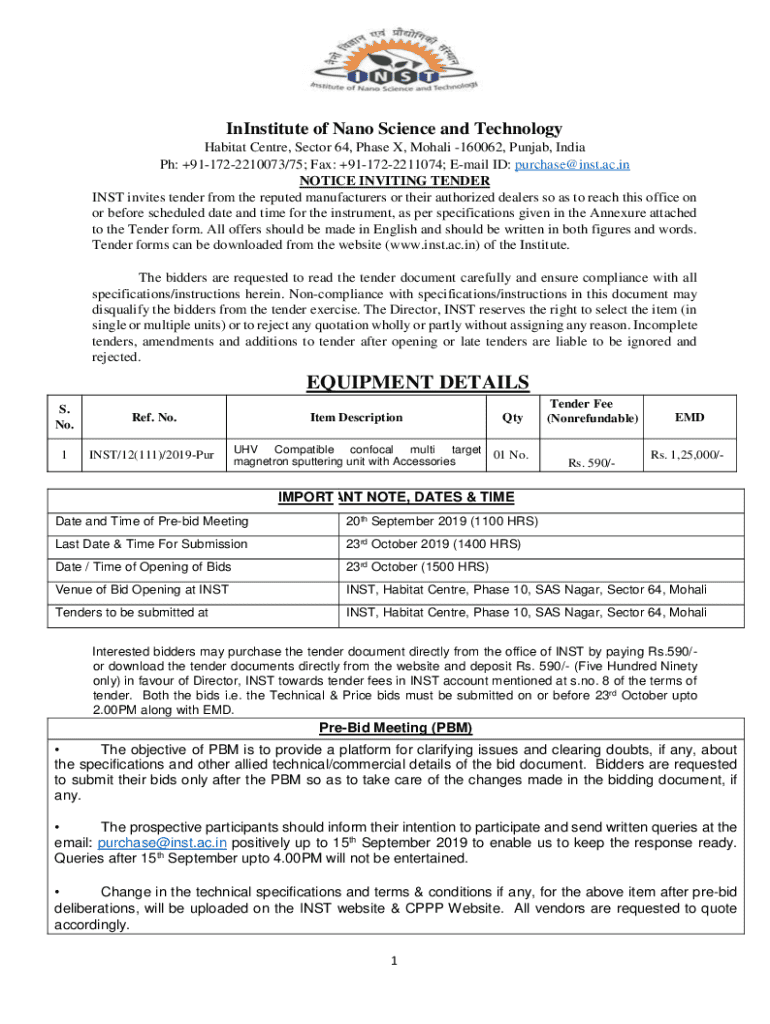 Get the free Tender Notification for the procurement of a Sputtering ...