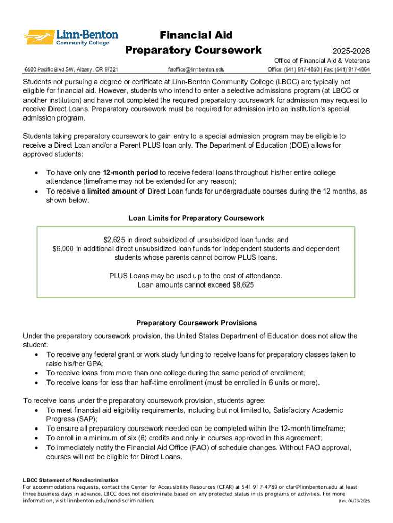 Step-by-step guide to completing the financial aid preparatory coursework form