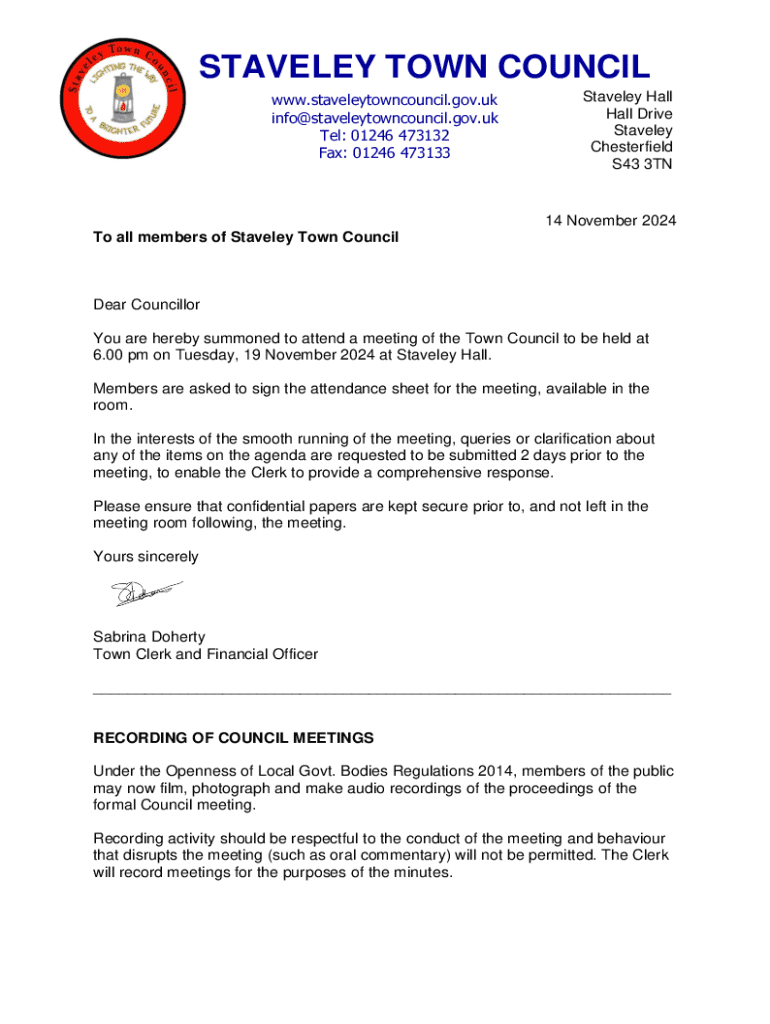 Get the free The Members of Staveley Town Council DDI: +44 (0)20 ...