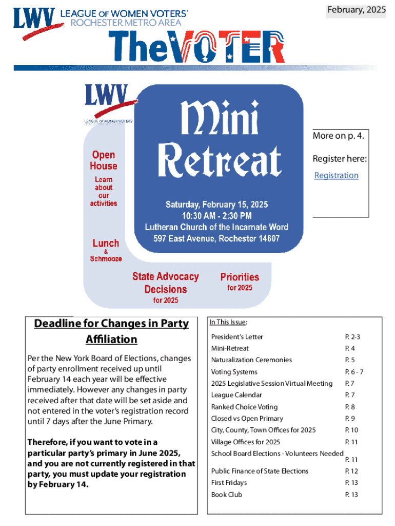 Document outlines important dates and information regarding voter registration, upcoming elections, and proposals for ranked choice voting and nonpartisan primaries. It describes the League of Women