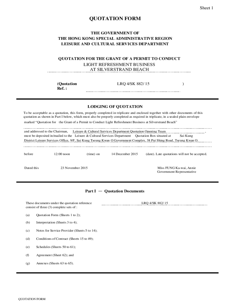 Typically, businesses or service providers who wish to offer pricing information and terms to potential clients or customers are required to file a quotation form.