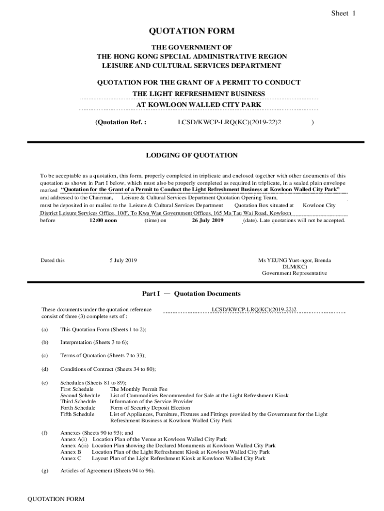 Get the free Quotation Form