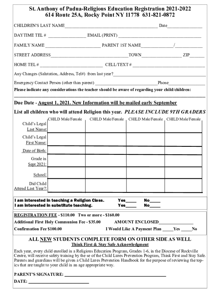 Get the free St. Anthony of Padua Religious Education Registration 2021-2022