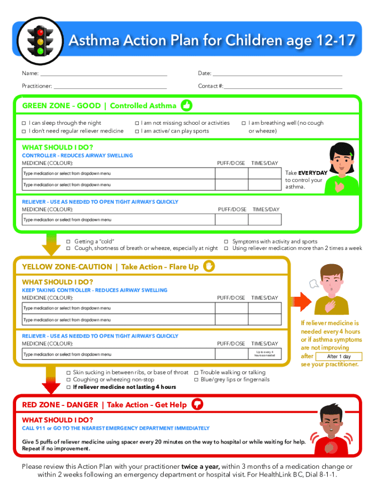 Get the free Asthma Action Plan for Children Age 12-17
