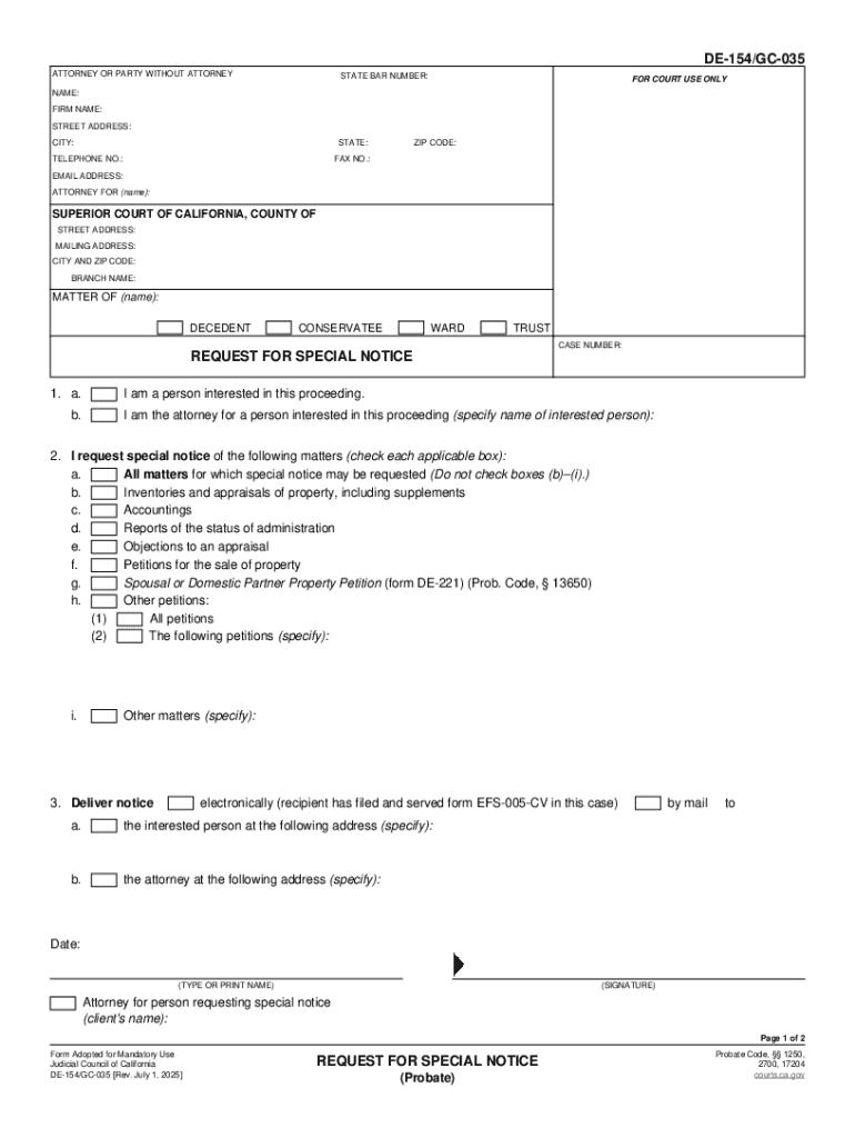 A Comprehensive Guide to Form DE-154 (GC-035) in California Courts