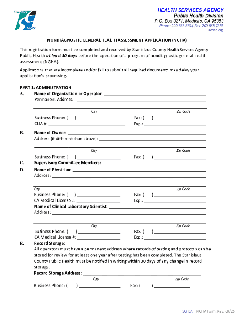 Get the free Nondiagnostic General Health Assessment Application (ngha)