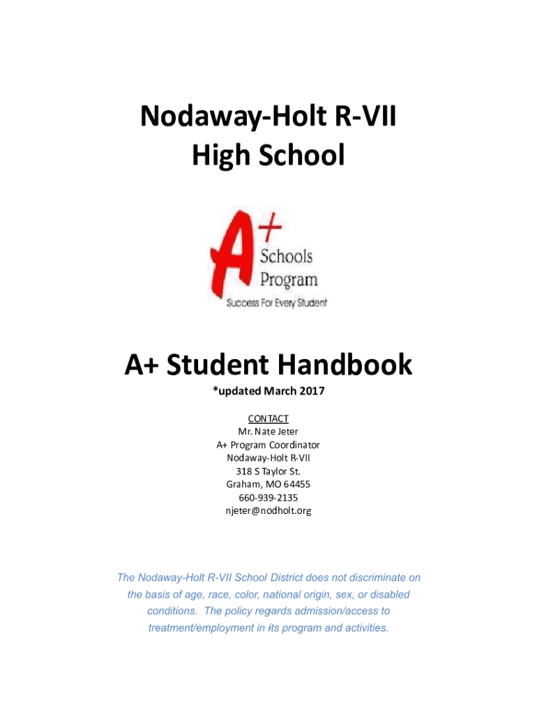 Get the free Nodaway-holt R-vii a+ Student Handbook