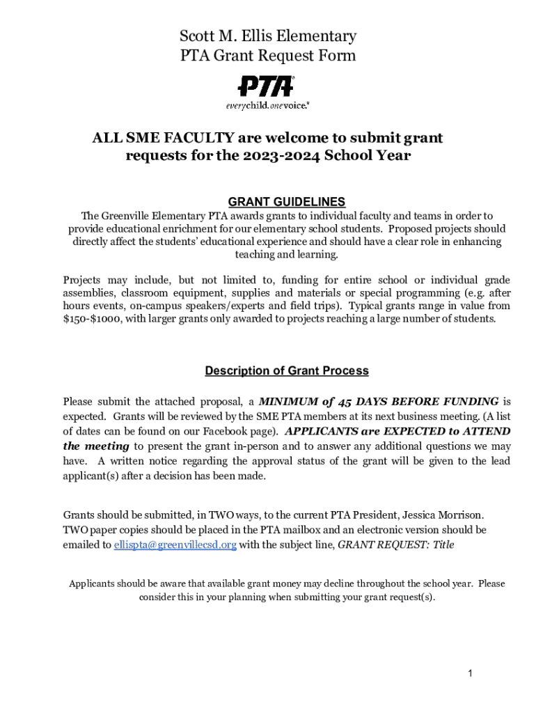 Get the free Pta Grant Request Form