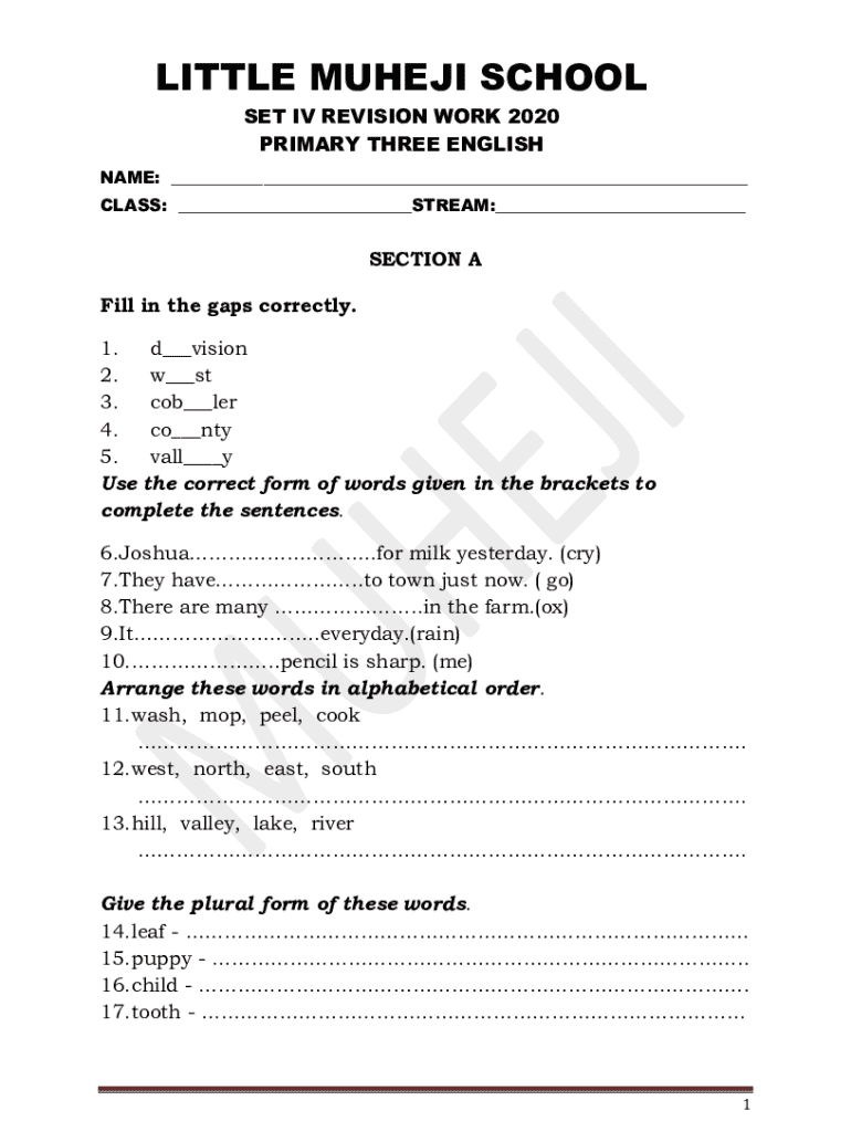 Get the free Little Muheji School Set Iv Revision Work 2020