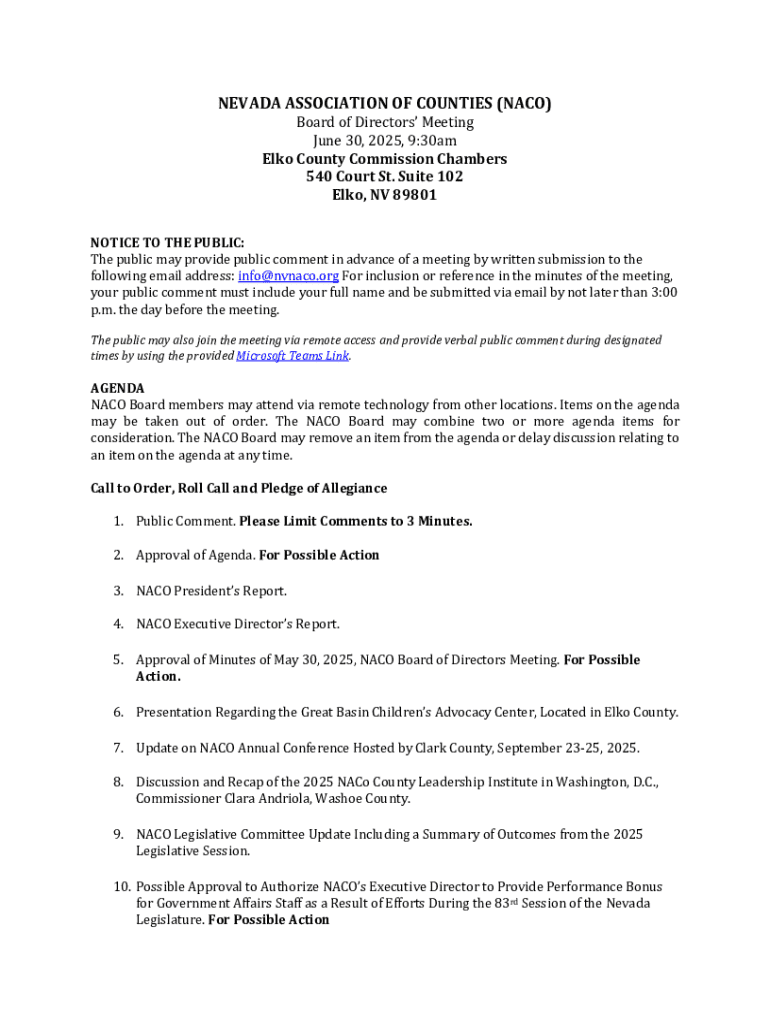 Get the free Nevada Association of Counties Board Meeting Agenda