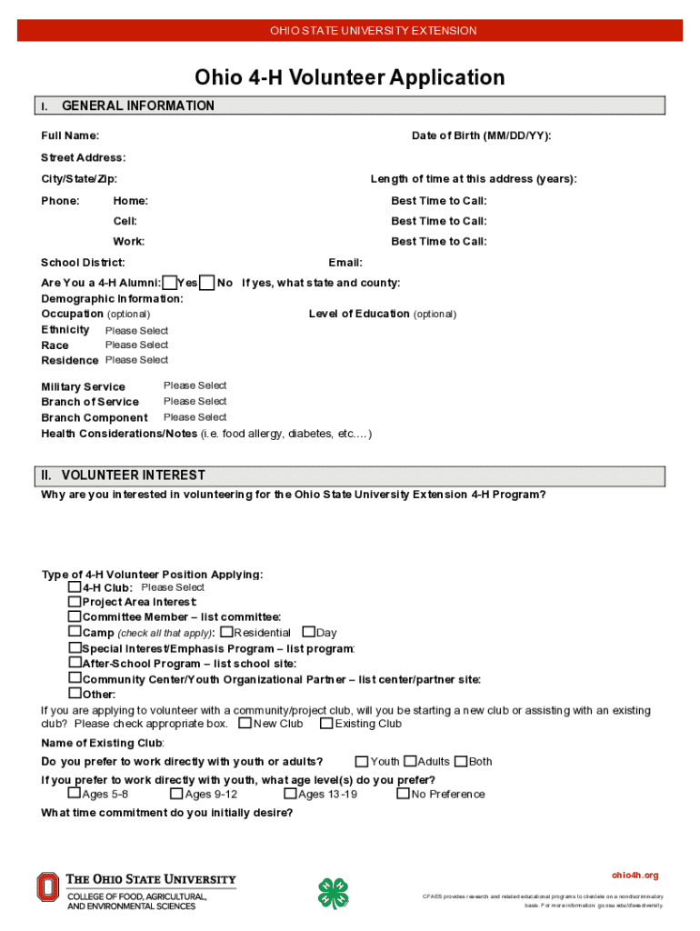 How to fill out ohio 4-h volunteer application