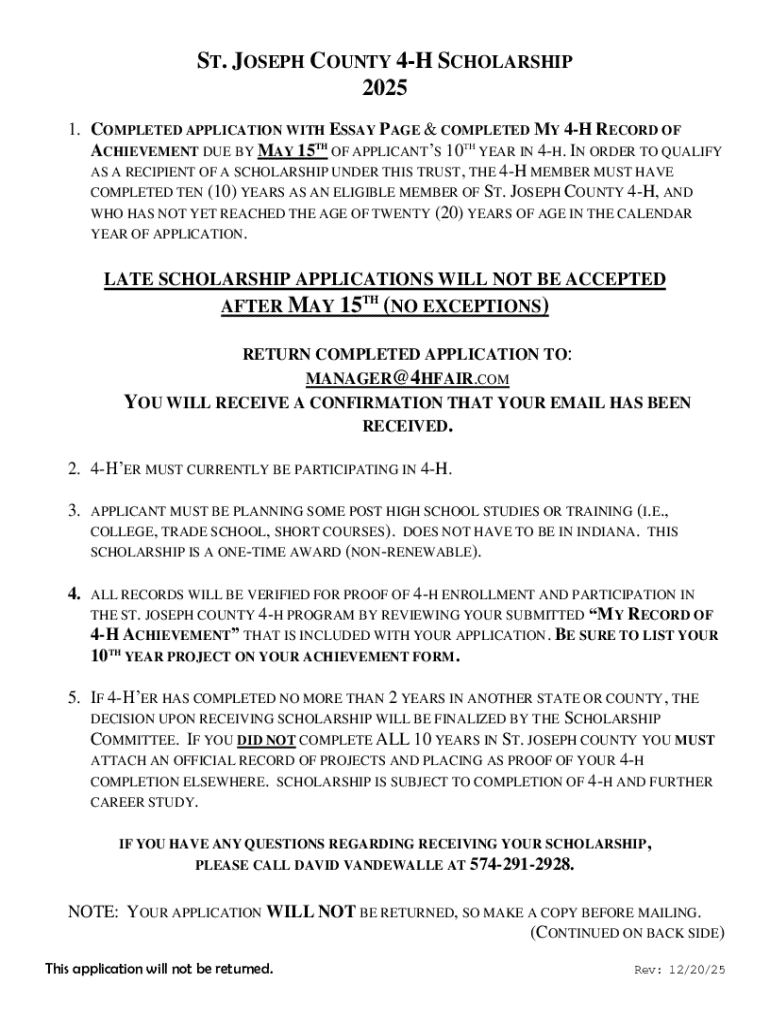 Get the free St. Joseph County 4-h Scholarship