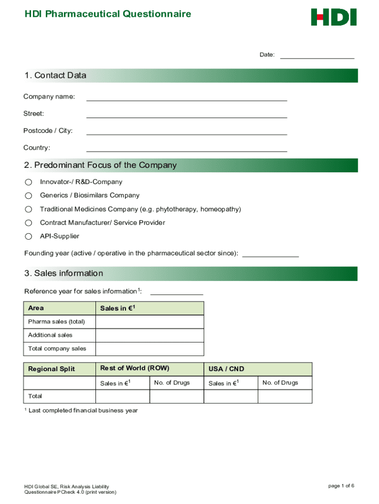 Get the free Hdi Pharmaceutical Questionnaire
