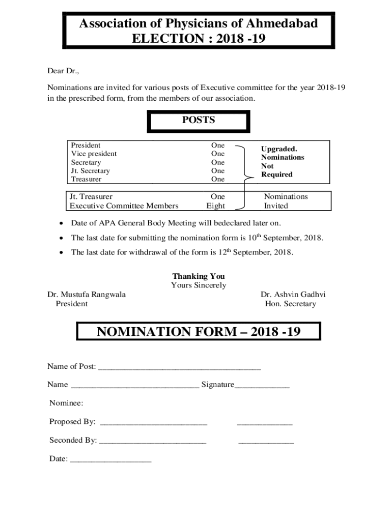 Get the free Nomination Form for Association of Physicians of Ahmedabad