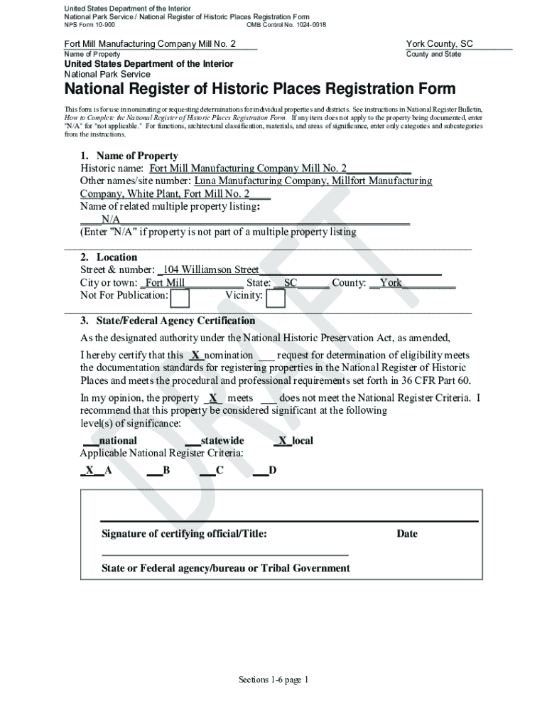 Get the free National Register of Historic Places Registration Form