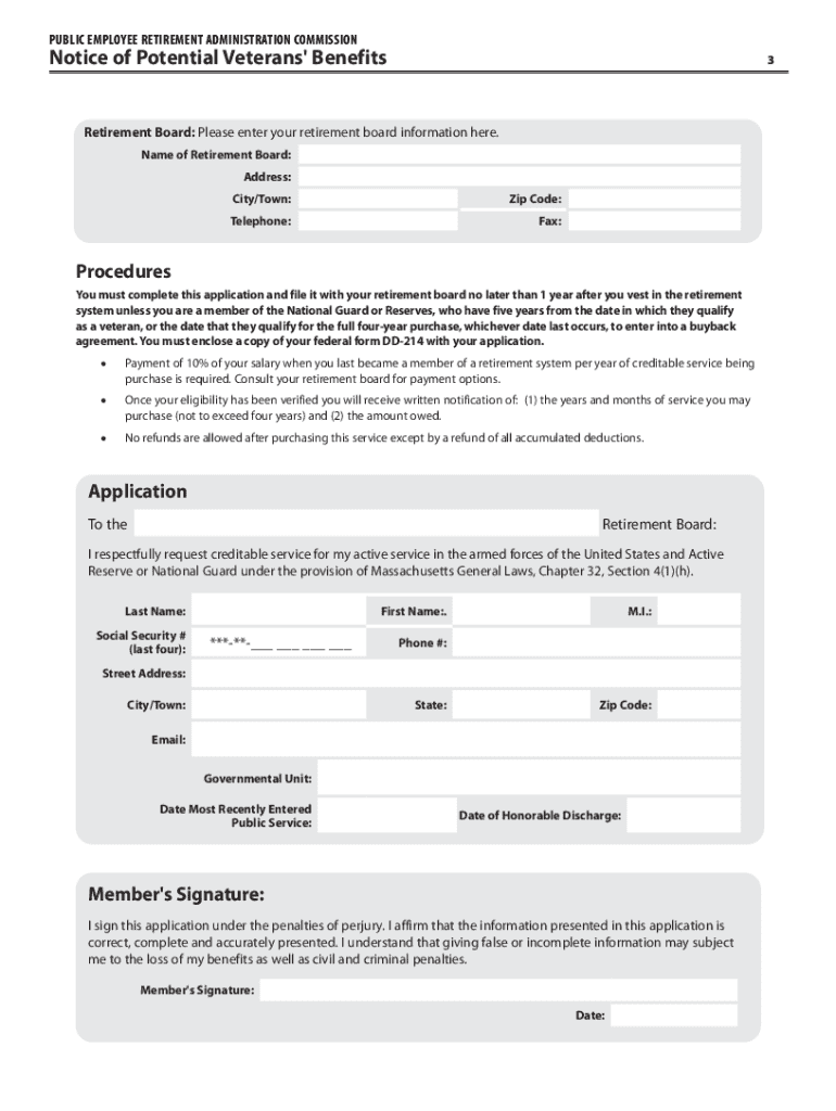 Get the free Notice of Potential Veterans' Benefits