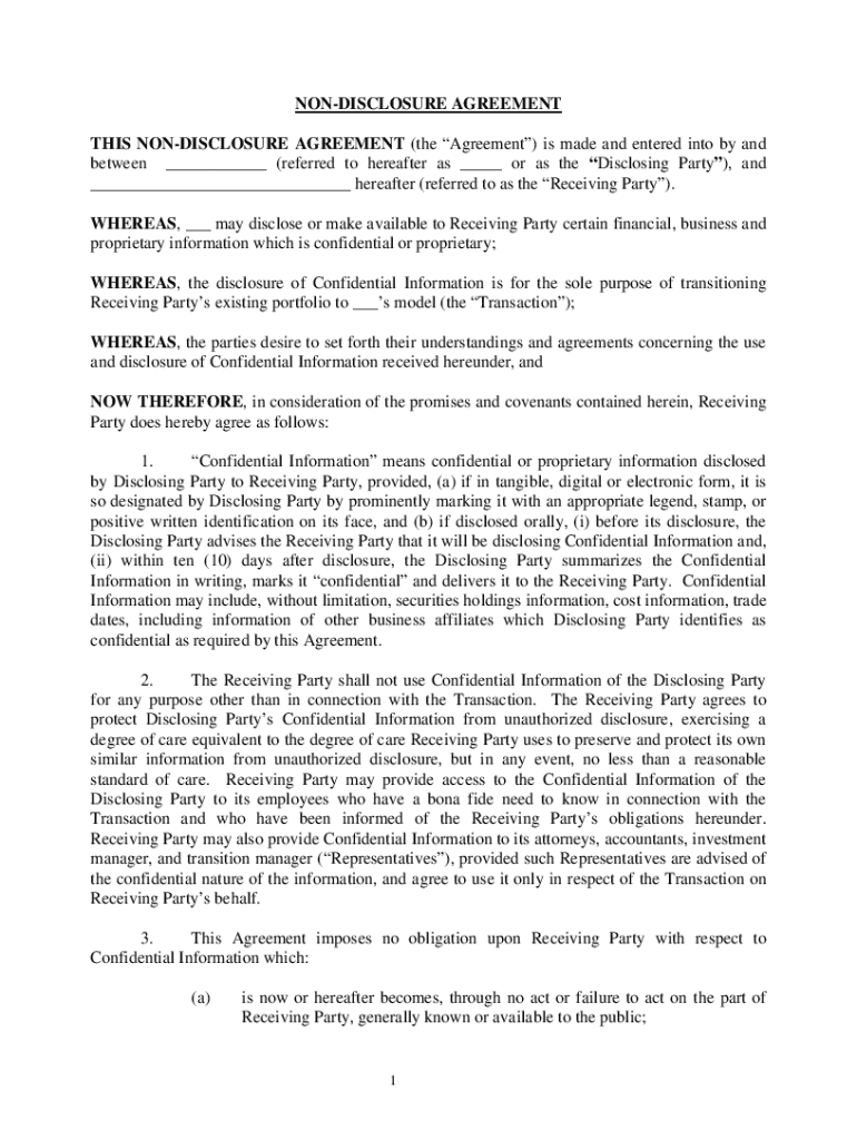 Get the free Non-disclosure Agreement