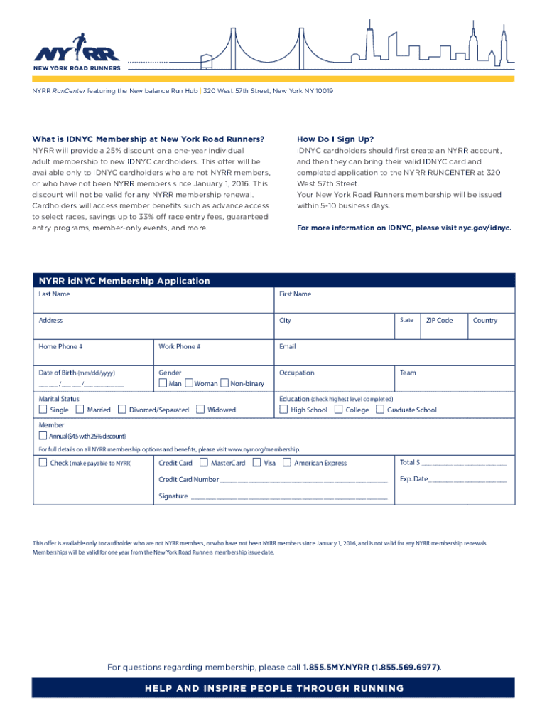 Get the free Nyrr Idnyc Membership Application
