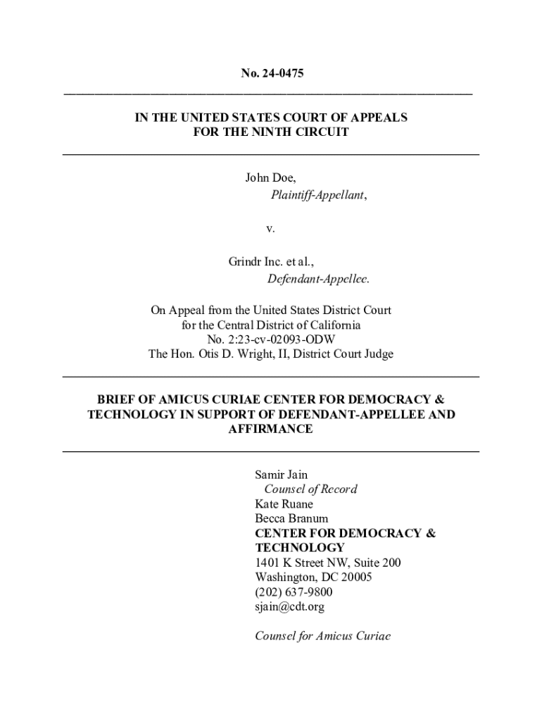 Get the free Brief of Amicus Curiae Center for Democracy & Technology
