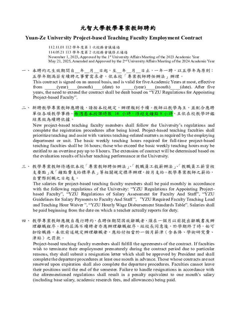 Get the free 元智大學教學專案教師聘約