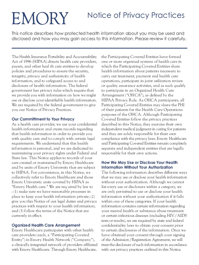 Get the free Notice of Privacy Practices