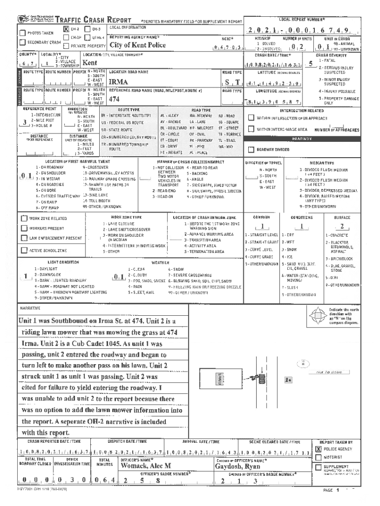 Get the free Ohio Traffic Crash Report
