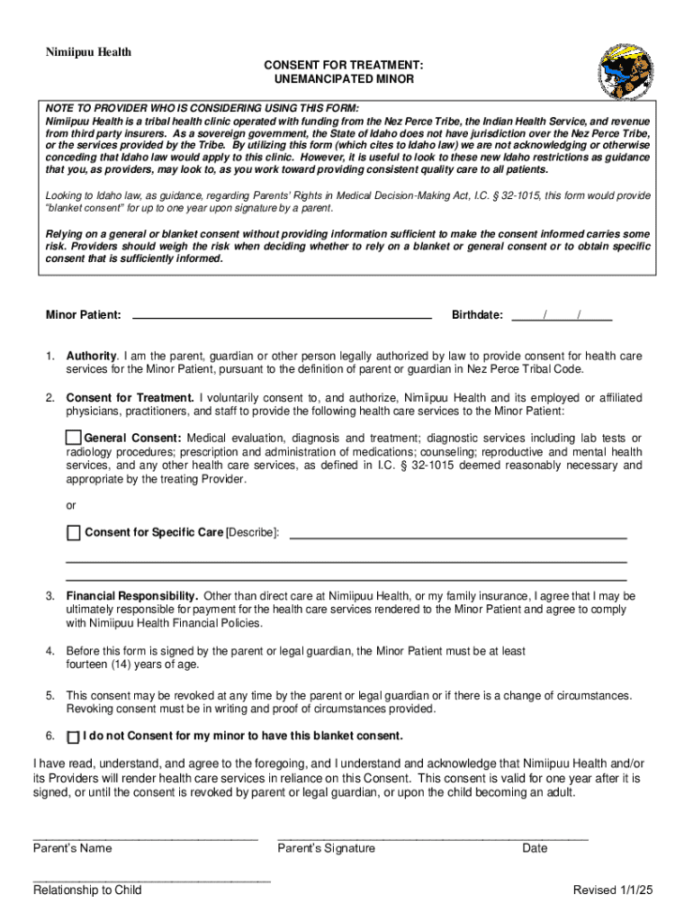 Nimiipuu Health Consent Form - How-to Guide