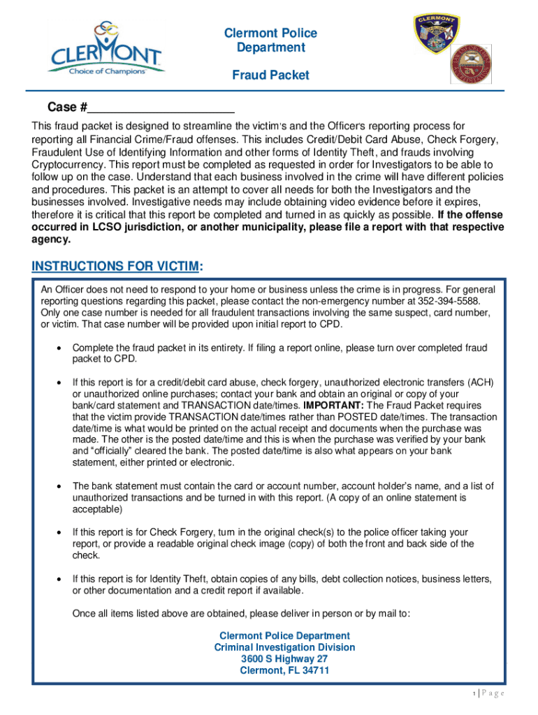 Clermont Police Fraud Packet Form: A Comprehensive Guide