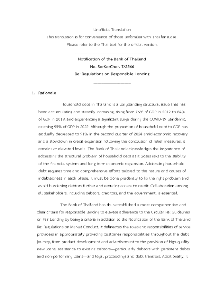 Get the free Notification of the Bank of Thailand No. Sorkorchor. 7/2566