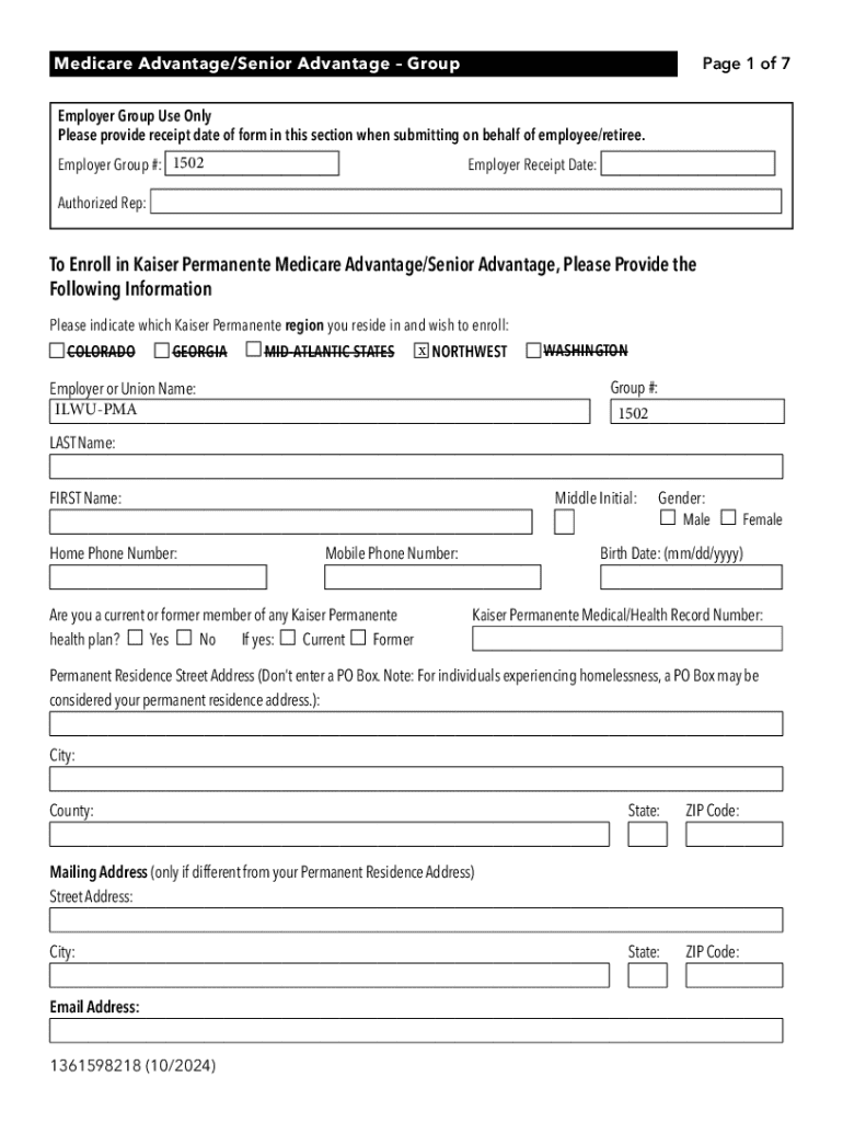 Get the free Kaiser Permanente Medicare Advantage Enrollment Form