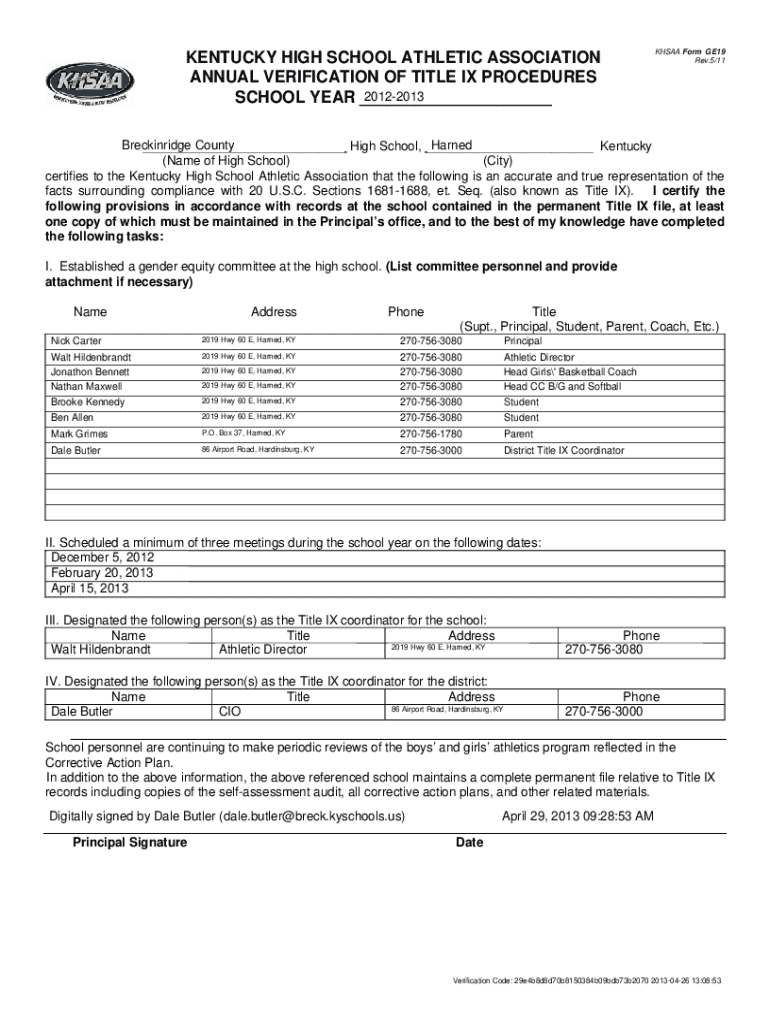 Get the free Khsaa Title Ix Verification