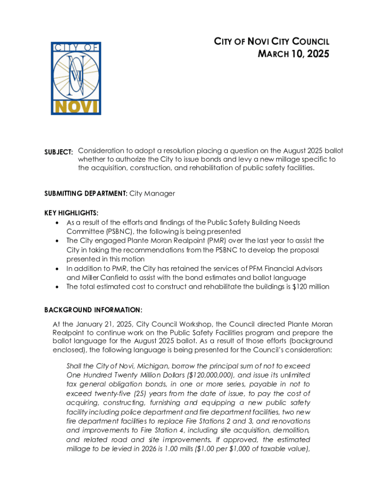 Get the free Novi putting $120 million public safety proposal on August ...