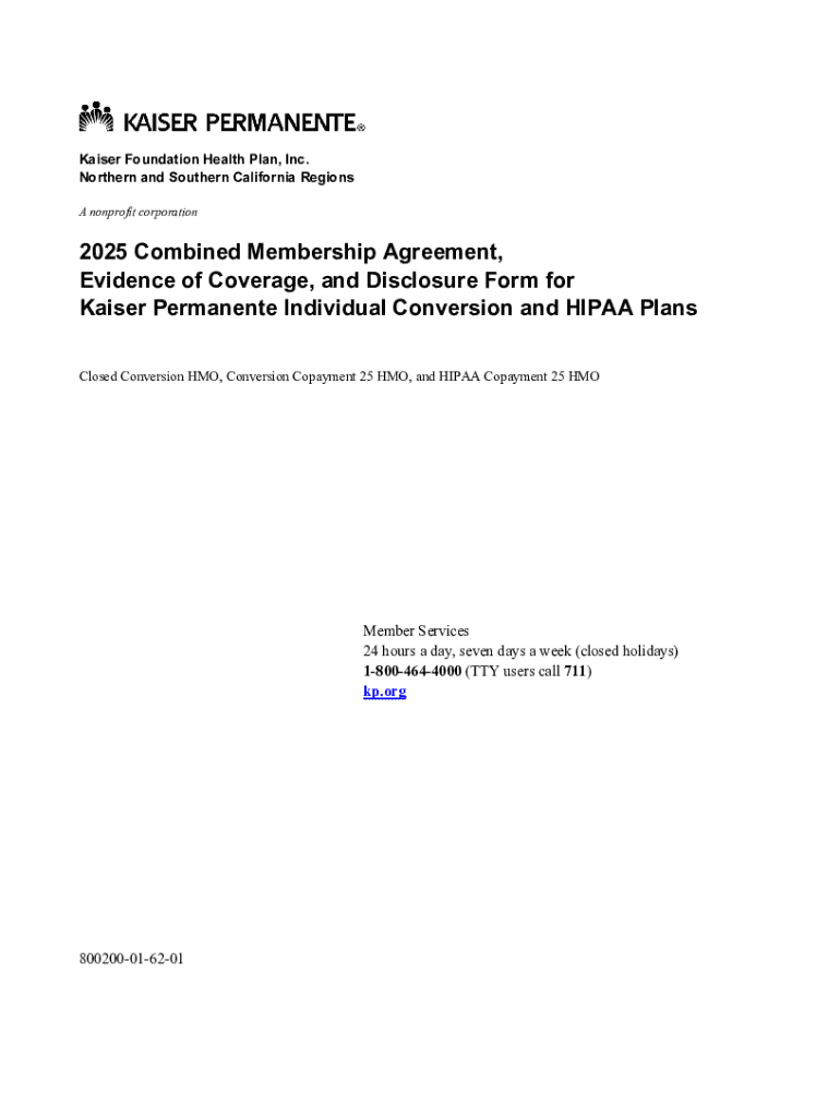 Get the free Kaiser Permanente Individual Conversion and Hipaa Plans
