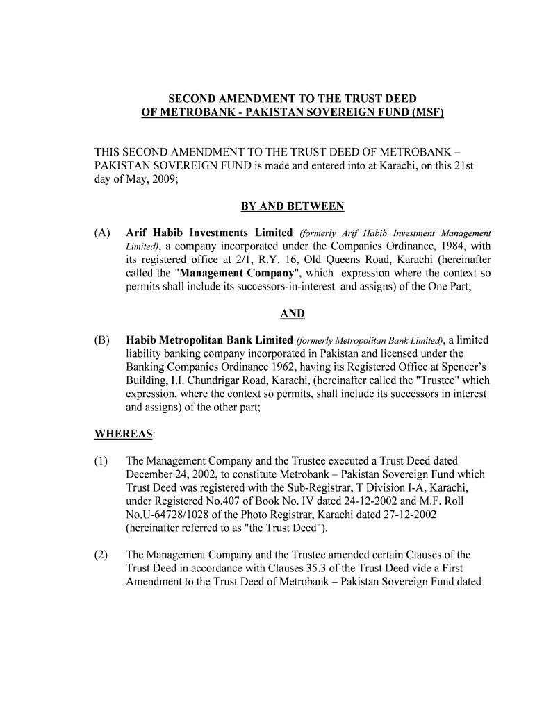 Get the free Second amendment to the trust deed of metrobank - MCB-Arif Habib ...