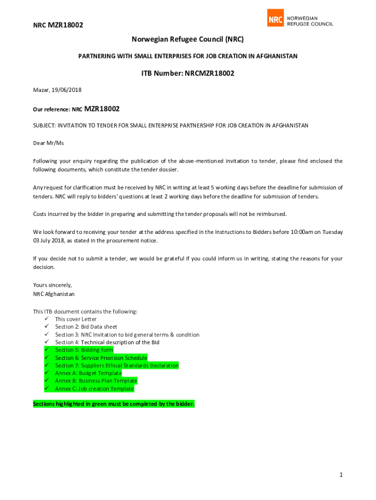 This document is an invitation to tender for a partnership aimed at creating jobs in Afghanistan by supporting small and medium enterprises (SMEs) or entrepreneurs. It outlines the requirements, evaluation
