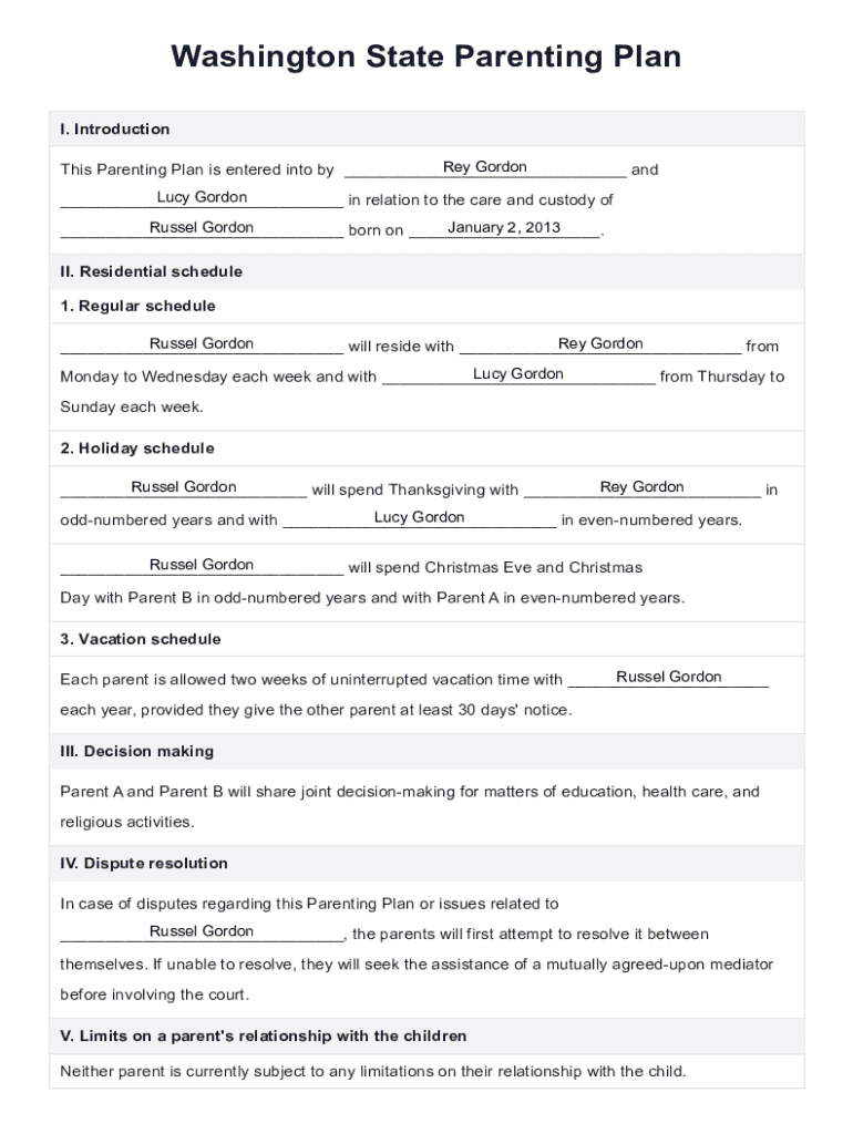 How to fill out washington state parenting plan?