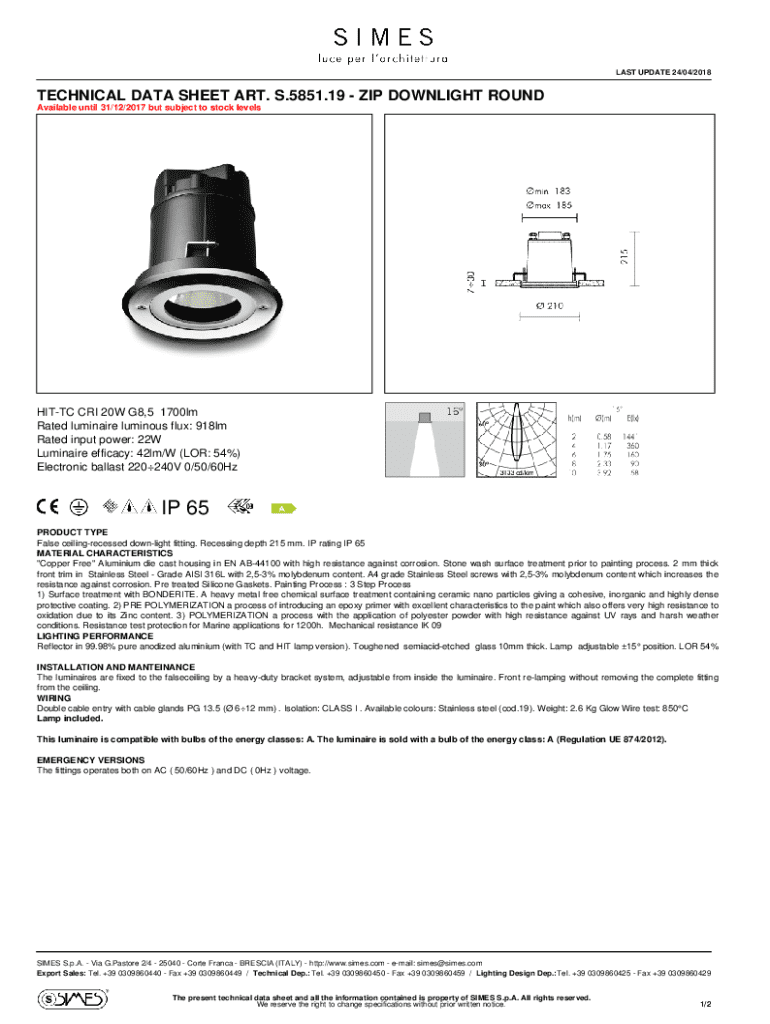 Get the free Technical Data Sheet Art. S.5851.19 - Zip Downlight Round