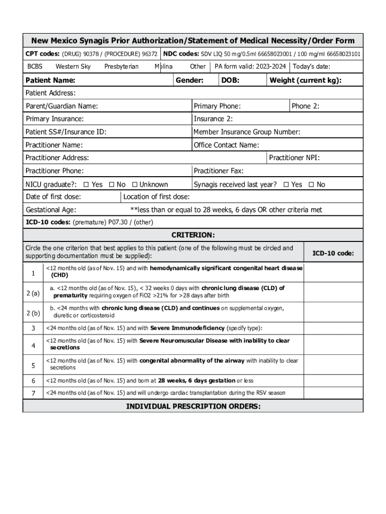 Get the free New Mexico Prior Authorization/statement of Medical Necessity/order Form