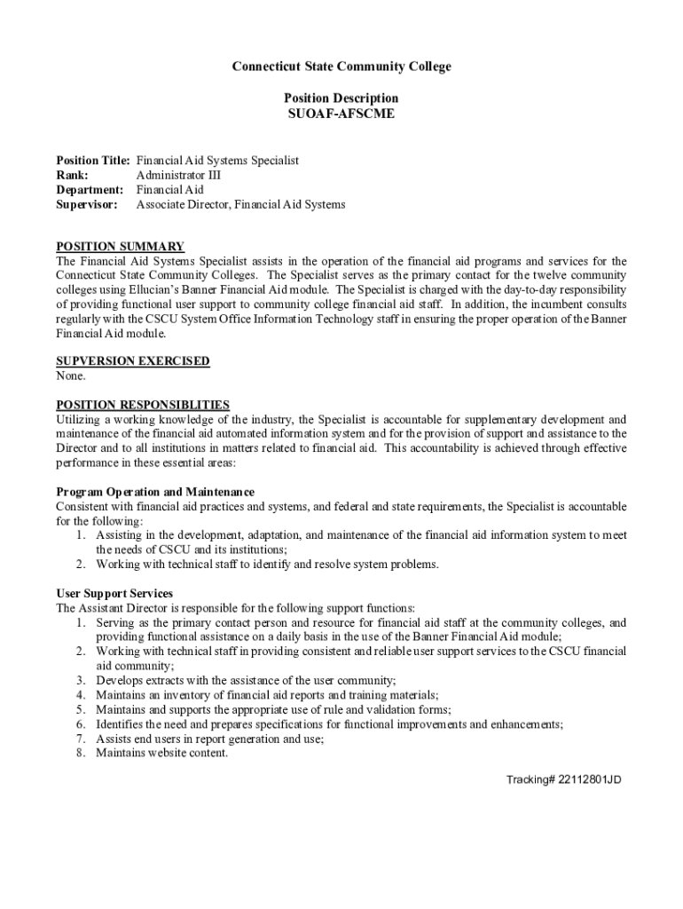 Get the free Financial Aid Specialist - Connecticut State Community College