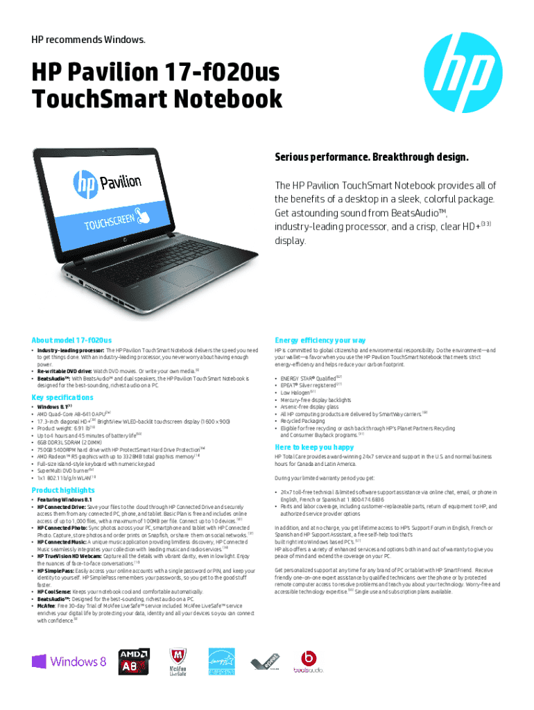 Get, Create, Make and Sign hp pavilion 17 f020us