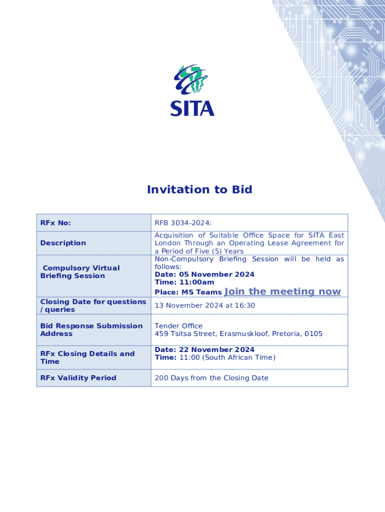 An invitation to bid (ITB) template serves as a structured document that organizations use to solicit bids from contractors or service providers. It outlines the project's requirements, deadlines, and submission guidelines, making it clear what is expected from potential bidders.