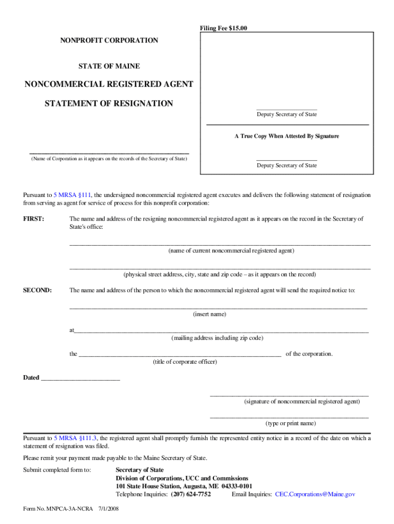 Get the free Noncommercial Registered Agent Statement of Resignation
