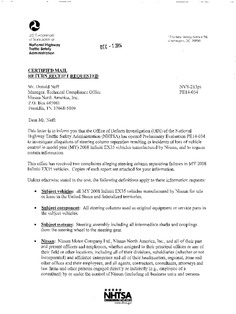Get the free Nhtsa Information Request