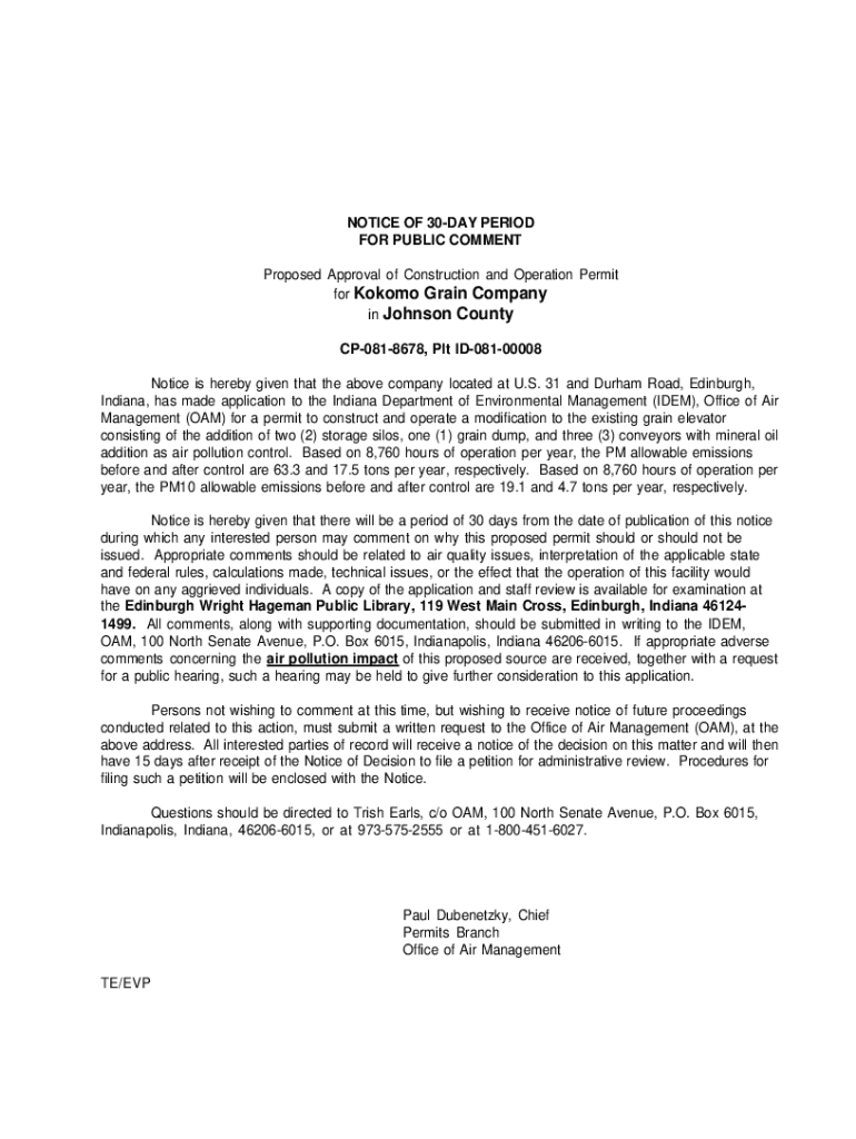 Get the free Notice of 30-day Period for Public Comment - permits air idem in