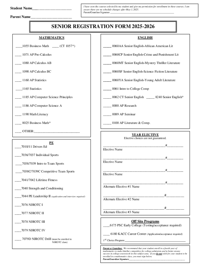 Get the free Senior Registration Form 2025-2026