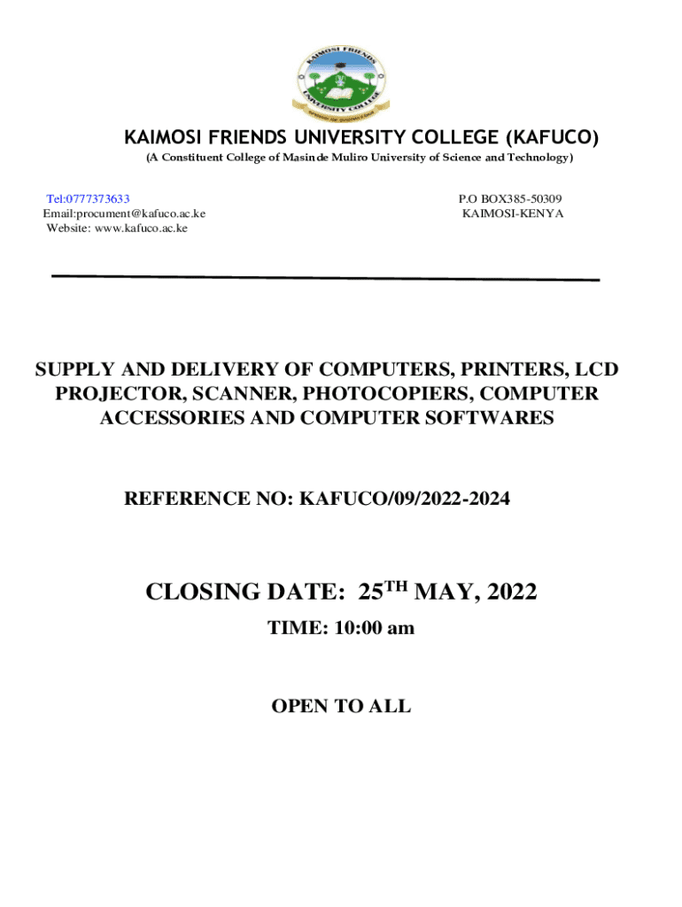 The Kafuco Pre-Qualification Document is a pivotal tool designed to streamline the pre-qualification process for various projects and partnerships associated with Kafuco. This document serves as an essential step for individuals and businesses looking to engage with Kafuco's offerings by providing key insights into their qualifications and capabilities.