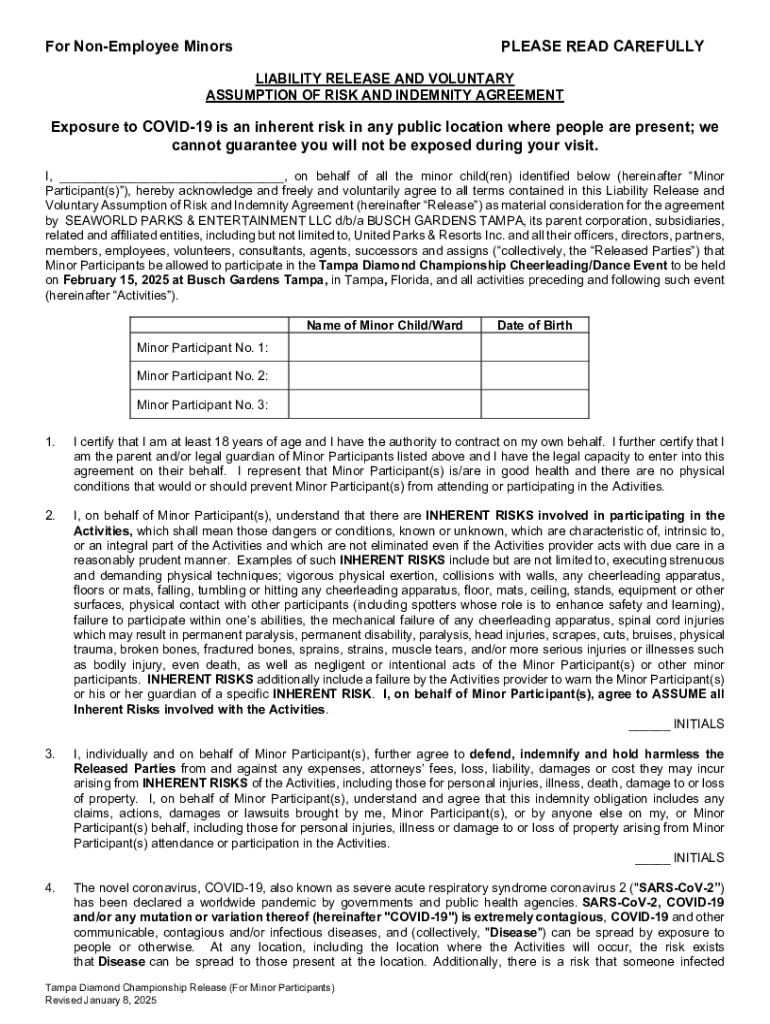 The Tampa Diamond Championship release form is a crucial component of the event. It serves to ensure that all participants recognize the inherent risks involved in competitive sports and agree to assume those risks. This release form is legally binding and protects the organizers from liability in the event of injury or accidents. Participants must carefully read and understand the form to know their rights and responsibilities in the tournament.