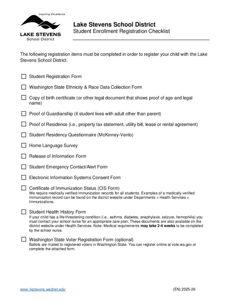 Get the free Lake Stevens School District Student Enrollment Registration Checklist
