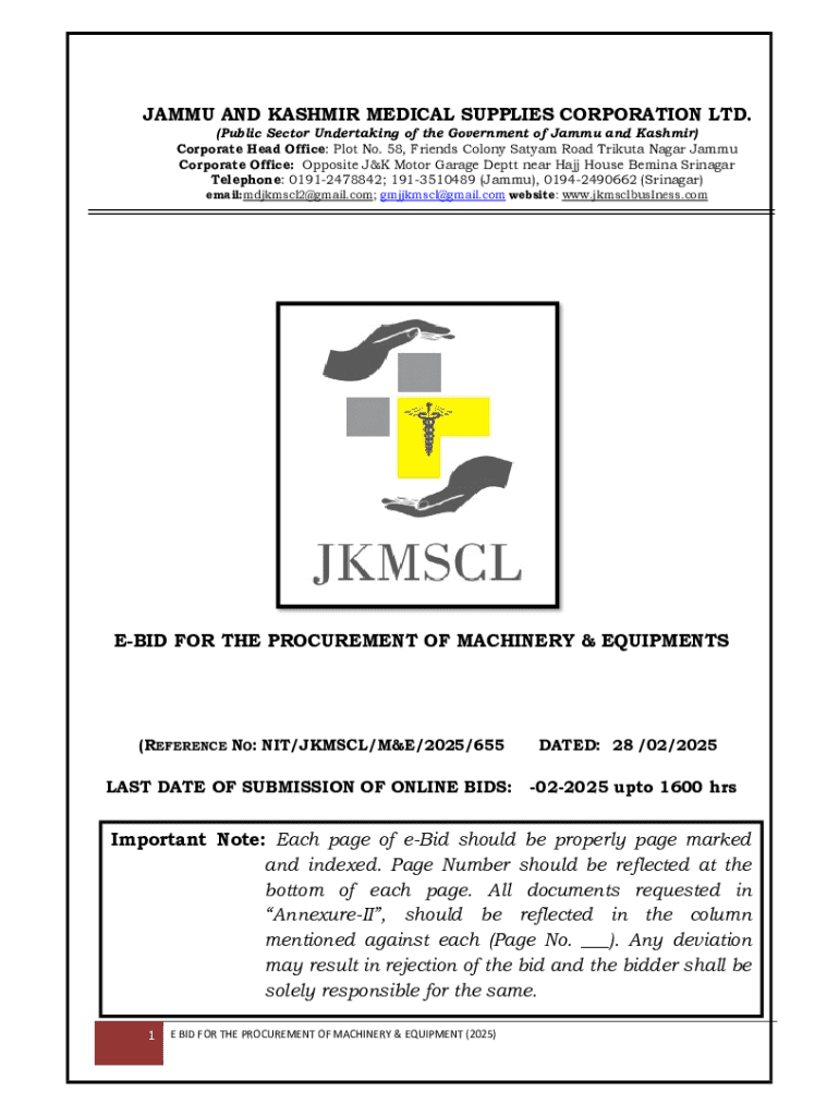 Get the free E Bid for the Procurement of Machinery & Equipment (2025)