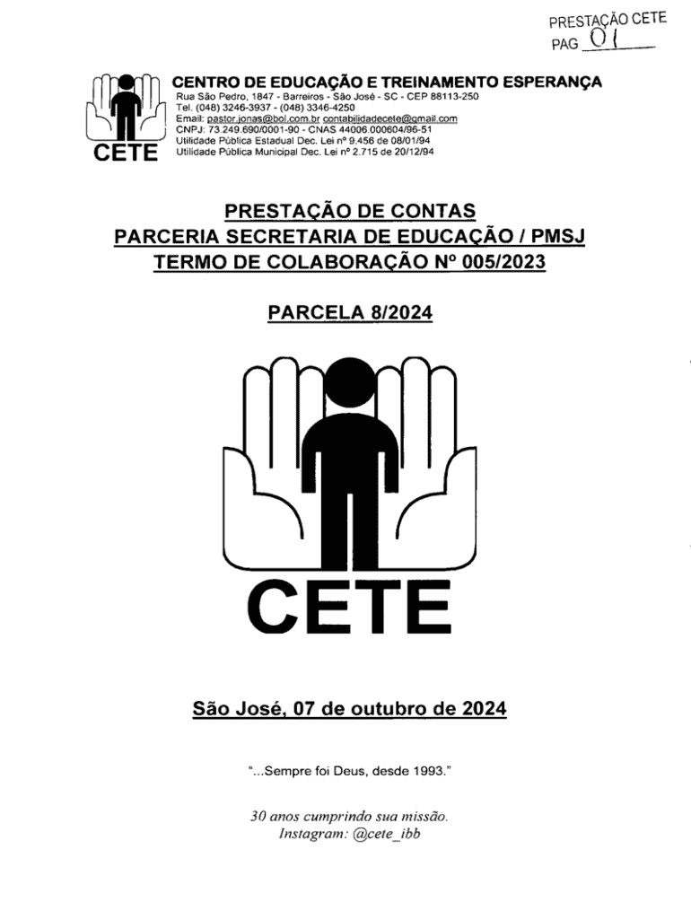 Obtenha o gratuito PrestaÇÃo Cete - saojose sc gov